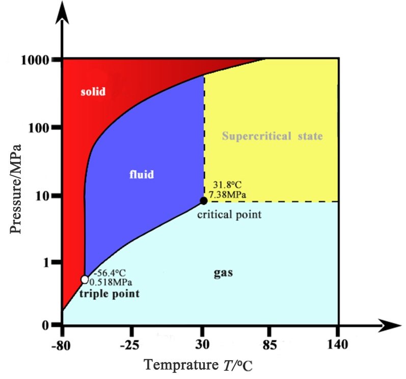 Span, R. and Wagner, W.: A New Equation of State for Carbon Dioxide Covering the Fluid Region from the Triple-Point Temperature to 1100 K at Pressures up to 800 MPa. J. Phys. Chem. Ref. Data, vol. 25, No. 6, 1996, pp. 1509–1596.