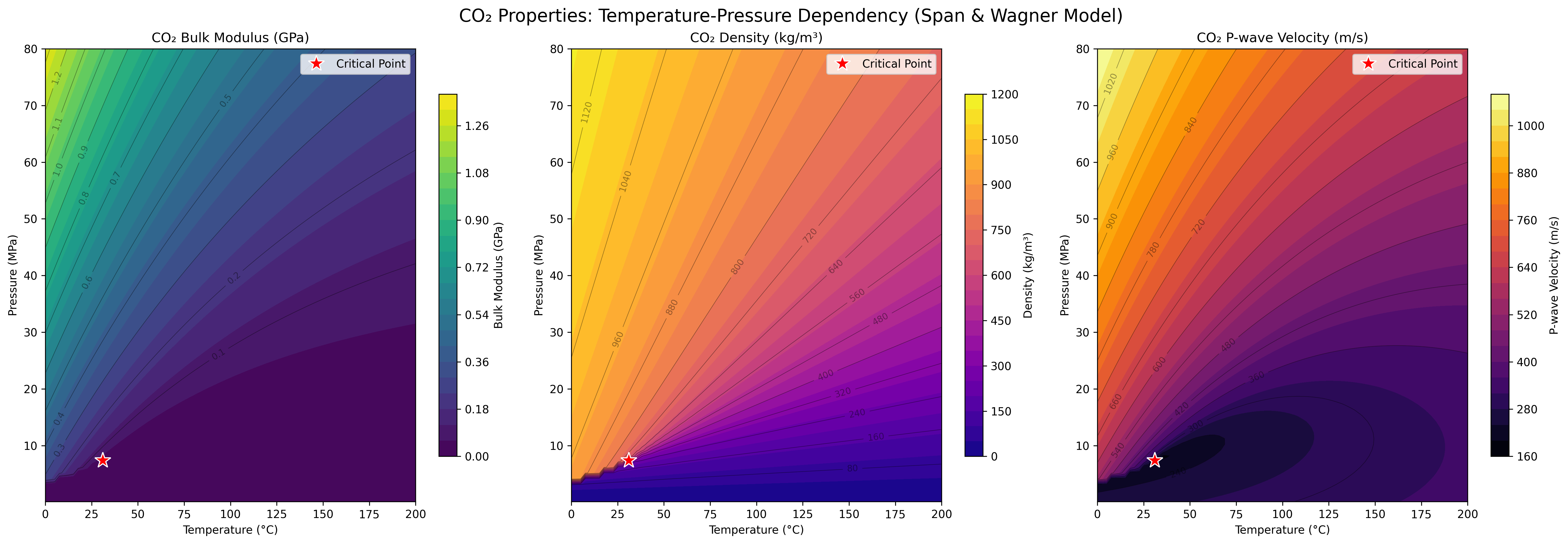 , most fluid models are implementations of Batzle and Wang 1992. The CO₂ model is an implementation of Span and Wagner 1996. Proprietary models may be added to the open-source ones, which is the case at Equinor. The illustrations that are included in the documentation are produced with the Equinor internal models.