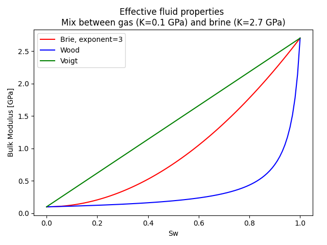 The alternative, Brie's model, is an empirical relation. It has one parameter (the Brie exponent) which determines the curve shape of the mixture. A typical value is 3.0. In a fluid mixture with more heterogeneities, Brie's model can be closer to observations than Wood's. These can be considered realistic upper and lower bounds for fluid properties , as it is unlikely that the mixture will approach the Voigt bound.