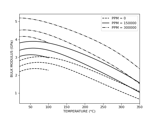Primary wave velocity of sodium chloride solutions, equation 29 in Batzle & Wang [1]. |