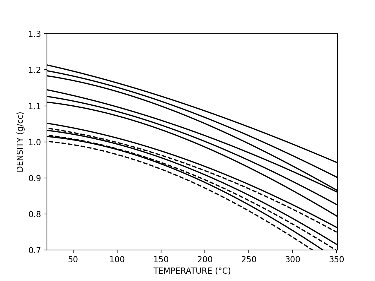 density of sodium chloride solutions, equation 27 in Batzle & Wang [1]. :param salinity: Salinity of solution as weight fraction (ppm/1000000) of sodium chloride. :param pressure: Pressure (MPa) of oil :param temperature: Temperature (celsius) of oil. :return: density of solution in g/cc. |