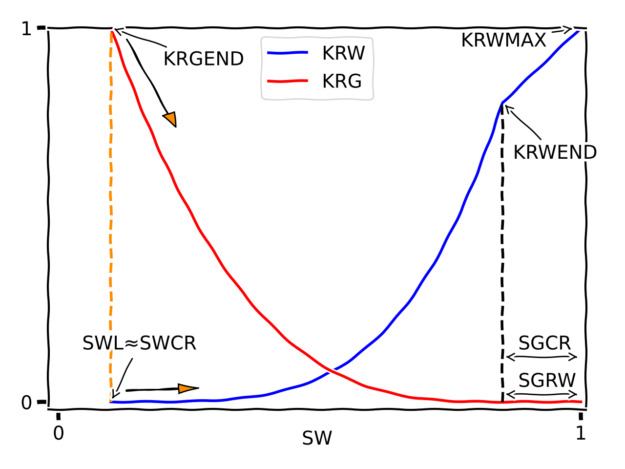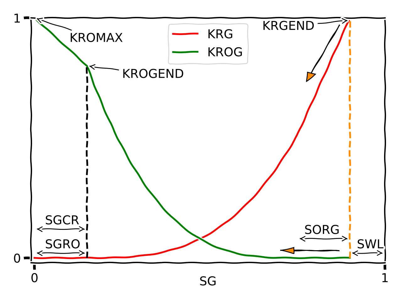 Trapped gas/residual gas. SGCR must be set equal to SGRW |