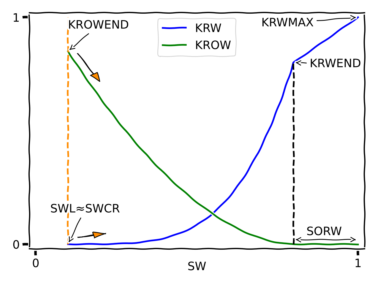 In an oil paleo zone, the saturation starts at sorw. socr (critical oil saturation) must be larger than sorw. The swcr parameter is to be interpreted as residual water.